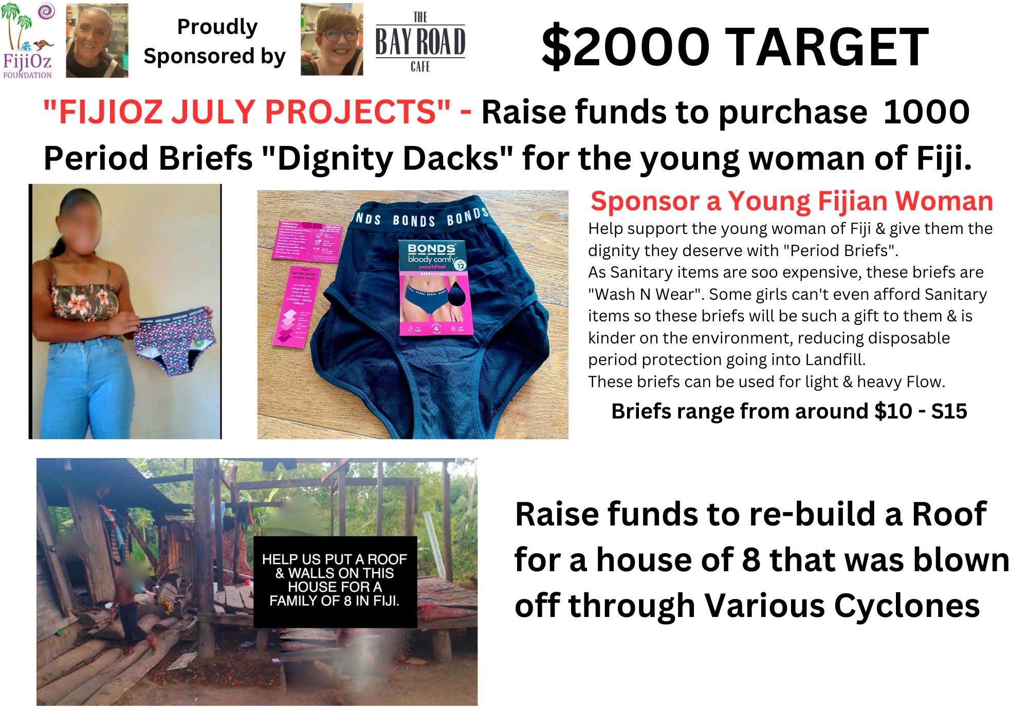 FijiOz July Project 2023 - Purchasing 1000 "Period Brief Dignity Dacks" for the Beautiful Girls & Woman of Fiji & also Putting A Roof on a house with a family of 8, after bad winds tares it a part.